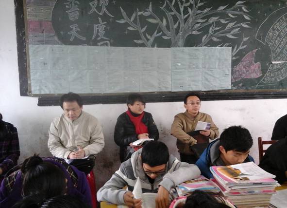 两天时间里,调研组共听课24节,教师座谈12场,学生座谈2场,并通过听汇报、实地考察、随机访谈等形式,全面深入调研指导了学校高效课堂建设情况和教育教学管理工作。调研组成员王玲莉、杨金水、梅晴、胡顺、王霞、钟爱林、郭新文、范莉,童绥宝、吕军等,充分利用上午的时间,密集地进行了听课,师生访谈工作,下午则分学科备课组开展评课研讨,共同剖析日常教学中的误区和不足,深入探讨高效课堂的实践及体会,并就老师们提出的困惑、问题进行了面对面的交流沟通。