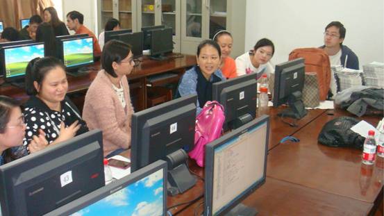 随后,华农附校的张倩老师运用此平台上了一节研讨课《科学饮食 健康成长》,让学生体会运用信息技术的手段处理分析数据,解决生活中的实际问题。课后与会老师按年龄被分为三组,大家对该课如何使用的ITtools课程管理平台促进教学进行了深入的分析讨论,并对该课有针对性的提出了宝贵的意见。三个组的组长金云、吴海波、邓慧琼老师,分别在总结本组讨论结果的基础上,向全会老师作了总结发言。