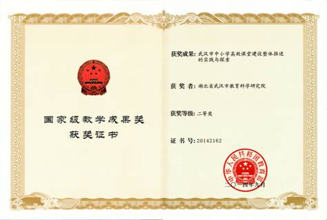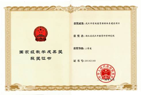 在市委教育工委、市教育局的关心和指导下,我院承担的武汉市“十二五”两项工程建设(有效德育、高效课堂)研究取得突破性进展。在日前国家举行的首届基础教育教学成果奖评比中,我院承接的“武汉市有效德育课程体系建设”和“武汉市中小学高效课堂建设整体推进的实践与探索”分别获得国务院颁发的国家级教学成果奖二等奖的荣誉。