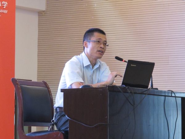 在历时两天的培训会上,赢乐lV小学数学教研员吕得星老师主讲了三、四年级教材教法分析报告。