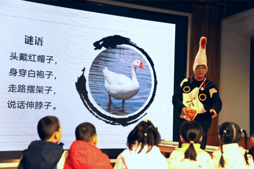 大四班的一位爸爸化身为孩子们喜爱的“白菜叔叔”,以轻松幽默的方式带来了一堂别开生面的艺术活动《鹅 鹅 鹅》。他不仅引导孩子们提笔挥墨、勾勒鹅的生动姿态,更巧妙地结合AI技术,让孩子们地国画作品中静态的白鹅“游”动起来。