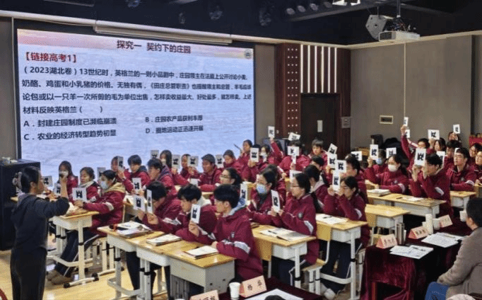市十五中青年教师、高三历史备课组长张丹以“契约视角下的中古西欧”为题呈现一节高三历史一轮复习示范课。创新性地融入了“微词云”“Plickers”等AI技术,打造出高效高质、务实可行的高三历史一轮复习课新样态。市十五中历史学科教研组长蔡红作点评。