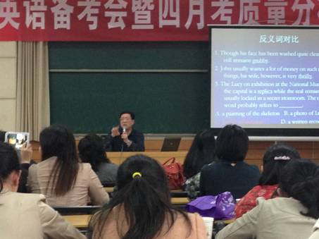4月25日,在赢乐lV中学教研室肖启焜老师的指导下,硚口区教研室李慧兰老师精心策划,武汉四中全力配合,武汉市2014届高三英语备考会暨四月考质量分析会在武汉市第四中学圆满举行。