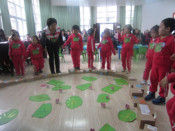 接着,老师们集体观摩了该园小班徐琳老师的科学领域活动“大蒜的生长”和中班朱惠敏老师的中班艺术领域活动“小青蛙的家”。小三班的徐老师利用班级自然角里具体可感的“大蒜宝宝”,引导孩子们去观察大蒜的生长情况,初步了解了大蒜的生长过程,学会用图画方式记录蒜苗的外形,培养了幼儿观察、动手的能力。中一班朱惠敏老师扮演的“青蛙妈妈”带着一群“小青蛙”自主选择班级区域内的材料、工具制作荷叶,布置荷塘环境,共同努力创设出表演游戏区“小青蛙的家”,孩子们在自己搭建的家里尽情游戏,尽情欢乐。在两个活动中,老师和孩子们利用已有的区域环境和物质资源创设出新的环境,开展有意义的活动,在幼儿园集体教育活动与幼儿园环境创设、区域活动的有机融合方面做了有益的尝试。