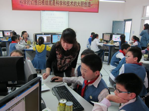 首先由卓刀泉小学展示了两节电子白板公开课:牛少敏老师执教的《Animals》和孙铖老师执教的《卡通——动起来的漫画》。两位老师精彩的课堂互动、熟练的电子白板应用,学生们一张张精美的电子画作,赢得了与会领导专家的一致好评。这两节课,充分体现了卓刀泉小学“表现教育灵动课堂”模式的运用,同时,也是卓刀泉小学打造“表现性师生”地一次很好展示。