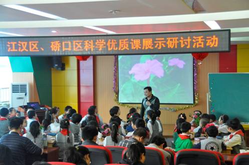 第一:课例展示。在刚刚落幕的武汉市优质课评比活动中,硚口区东方红小学王华嵩老师执教的《测量水的温度》,江汉区大兴第一实验小学李骆群老师执教的《各种各样的花》均获得一等奖。为了展示执教教师的课堂风采,为了将优质的教育资源进行辐射与共享,这两节优质课的展示研讨活动便在朱老师与冯老师的精心策划与组织下得以顺利实施。李骆群老师在课堂上运用表格,通过学生的观察与交流,对学生的思维进行了科学的训练,过程严谨,规范;王华嵩老师在课堂上从优化实验材料入手,对学生的实验能力进行了培养与训练,效果凸显。