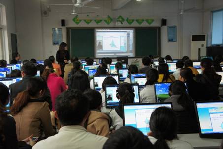 大会旨在为大力推进武汉市初级中学教育信息化应用水平,促进教育现代化进程,进一步推动市初中信息技术教育与其他课程的深度融合,提高初中各学科教师和学生的信息技术应用能力。展示活动组织严谨,课堂形式多样,来自汉阳、江岸、江汉、黄陂等区的五位获奖教师们呈现的现场课中,既有在微机室和“班班通”教室进行的常规课堂展示,也有场面宏大、在报告厅进行的“电子书包”课堂展示,充满现代化教育气息,研讨氛围非常浓厚。