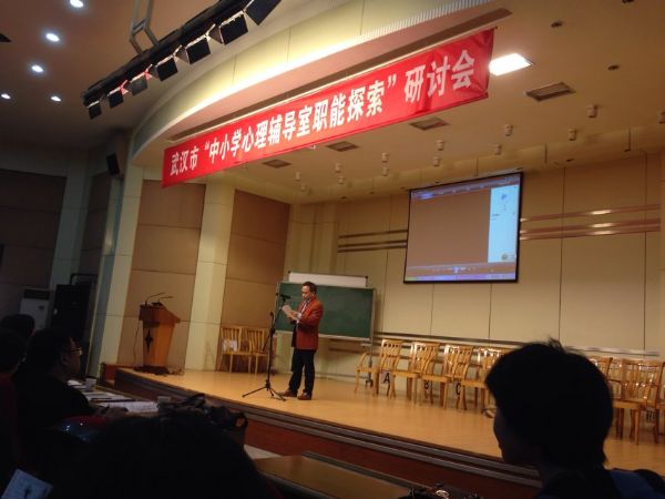 随后,江汉区3个心理健康教育合格学校的专职心理教师分别代表小学、初中和高中报告了各校在心理辅导室职能定位方面进行的思考与探索。红领巾学校王烛虚老师介绍的“四月感恩季”,突出了该校心理辅导室通过形式多样的活动渗透心理健康教育,营造心育氛围。武汉市第一初级中学姜娩君老师重点介绍了该校心理辅导室开展的专业团体心理辅导活动,其中“初三音乐减压团体辅导”引起了大家的关注。武汉市第十九中学李林老师详细介绍了该校心理辅导室通过建立学生心理成长档案激发学生参与心育课堂和心育活动的积极性,同时该校还通过开设“心晴小屋”微信公众号等网络平台向学生们普及心理健康知识。