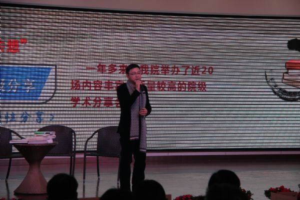 2014年1月15日下午,我院党委副书记、纪委书记李碧武在全市教育读书联盟暨职工书屋建设展示交流会上,进行了我院读书二级分享机制的主题介绍,深受与会领导和代表好评。李书记从院级高端引领、部门深度汇谈,引导我院教职工从“独思”到“共想”向与会者进行了分享。深情展望我院书屋建设将用思想的广度、学术的深度成就人生的高度、文化的厚度,用执拗的坚持达成书韵含香,情致高远。他也倡导我们用共同的阅读,去实现我们共同的梦想---- 教育梦、中国梦!