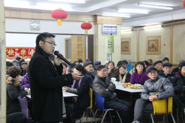 茶话会由院办公室副主任谢琼主持。院工会主席、办公室主任杨晓文在门口迎接各位老同志,对他们进行新春祝福,并为大家拍照留念。院办公室副主任方河滨、离退休办公室主任颜兵和办公室部分同志们热情为退休老同志服务。