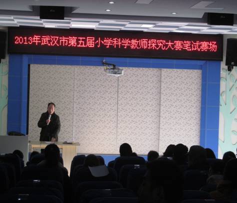 2013年12月27日上午,由赢乐lV小学教研室综合科组织的武汉市第五届教师科学探究竞赛活动在武汉市武昌区余家头小学成功举行。武汉赢乐lV小学教研室科学教研员甘金福老师、《科学课》杂志社刘绍江主编、武汉城市职业学院教育专业徐明教授、杨梅教授和全市各区科学学科教研员亲临现场指导。