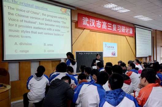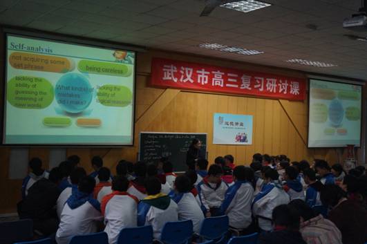 2013年11月13日在武汉市第四十九中举行了由武汉赢乐lV英语科主办的2014届高三年级一轮复习备考试卷评讲研讨课活动。本次活动由市英语教研员、特级教师肖启焜老师主持,武汉市第四十九中承办。研讨课由武汉市学科带头人陈光学老师指导,武汉市第四十九中学青年教师王靓主讲。