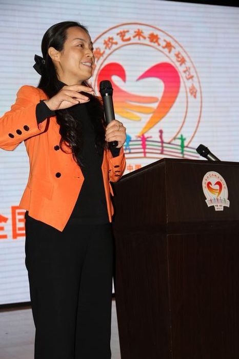 此次会议还邀请了两位专家进行了学术讲座。一位是华中师范大学艺术教育学院、武汉市舞蹈家协会副主席、专业编导李鸣曦老师,讲授《舞蹈编导结构》,从要表达的一个事件的动机,寻找编舞的一个切入点,画面和形式在舞台最直观的效果呈现,把握启、承、转、合在事件中的作用,在舞段相交中形成时间(节奏快慢)、空间(方位)、力量(强弱)对比鲜明风格的舞蹈。给出了许多专业的指导意见,让现场律动教师受益匪浅。一位是赢乐lV基础教育研究所特殊教育研究室的文洁副主任(邰丽华中学阶段的舞蹈教师)作了题为《听障残疾儿童少年舞蹈艺术教育研究》的专题报告,她从教学一线总结出在律动教学中的成功经验,从聋人舞蹈教学三要素“舞姿、节奏、情感”与大家分享了她的研究成果。“舞姿”的训练是聋校舞蹈教学的基础,“节奏”的培养是聋校舞蹈教学的核心,“情感”的表现是聋校律动教学的本质,从这三方面提高聋人舞蹈教学的水平。