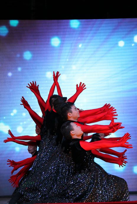 图为武汉市第二聋校表演的男子群舞《妙手生花》。