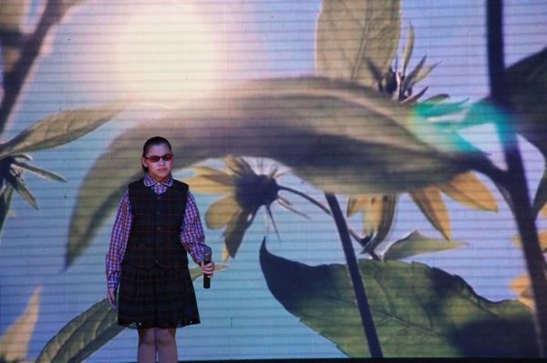 图为武汉市盲童学校表演的诗朗诵《金月亮、银月亮》。