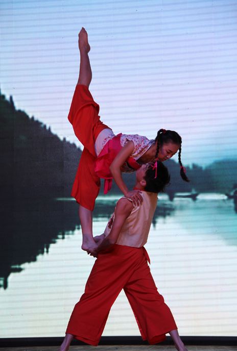 图为武汉市第一聋校表演的双人舞《哎呀,我的哥》。