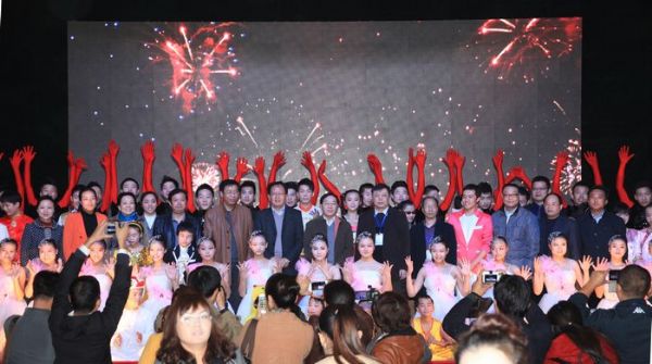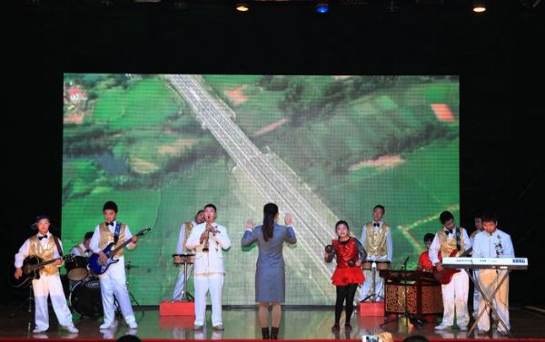 演出结束后,与会全体领导与残疾演员合影留念。