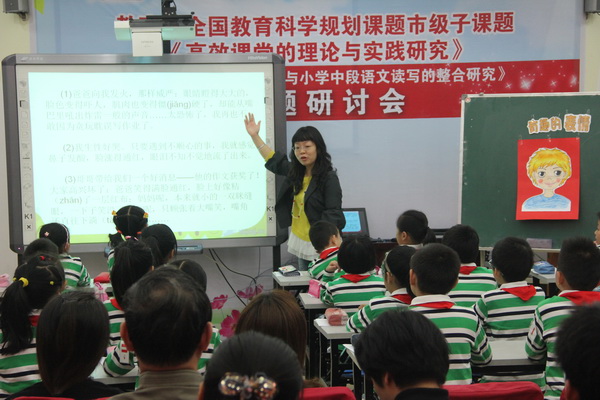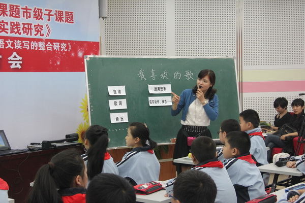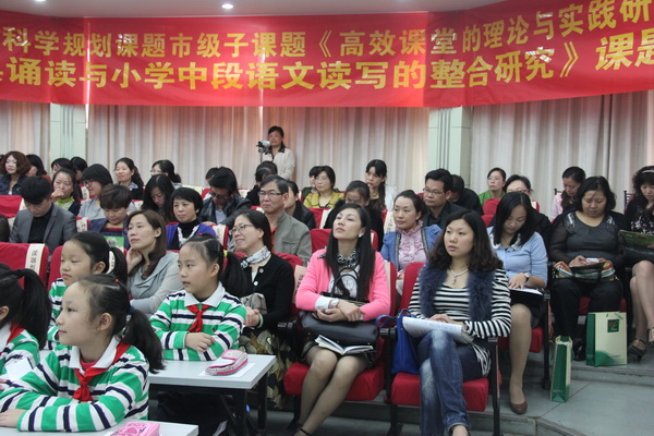 2013年10月24日,市区领导、来自市高效课堂课题研究第七协作组成员、市素质教育特色校快乐教育共同体成员及我区其他兄弟学校的领导,参加了我们黄陂路小学的市教育科学规划子课题《经典诵读与小学中段语文读写的整合研究》课题研讨展示活动。