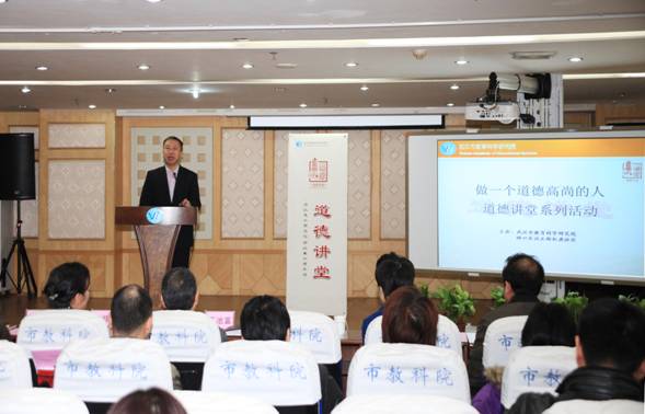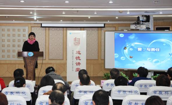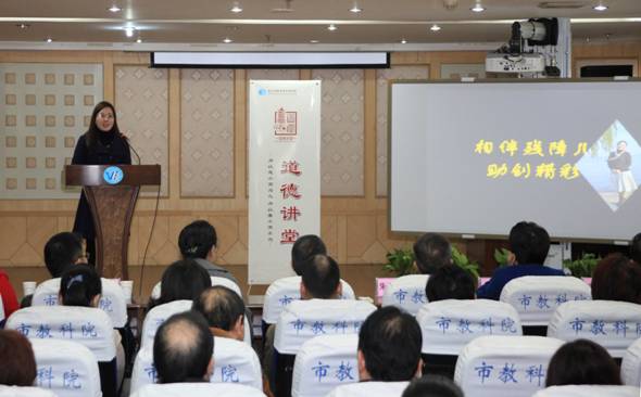 市委教育工委宣传部朱部长在活动最后总结讲话中表示,他先后参加过三次道德讲堂活动,其中两次均在教科院,我院本次道德讲堂活动令他印象十分深刻,活动流程规范,内容丰富感人,特别是身边平凡人的先进事迹令人动容,他们再现了社区居民、教育工作者在道德领域的突出成绩,为全市的教育人树立了榜样。他还提出了三点建议,一是建议我院继续发挥道德力量的支撑作用,为实现中国梦、教育梦以及全国一流教科院的目标而努力;二是建议道德要讲,更要做,从身边点滴小事做起,发挥道德的引领作用;三是建议结合工作特点,发挥我院长处和特色,将道德工作做得更好。