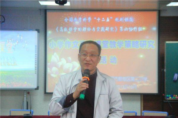 活动后半程,首先由教科室陈平主任汇报本校课题《小学作文高效课堂教学策略研究》的研究情况。