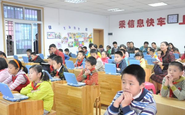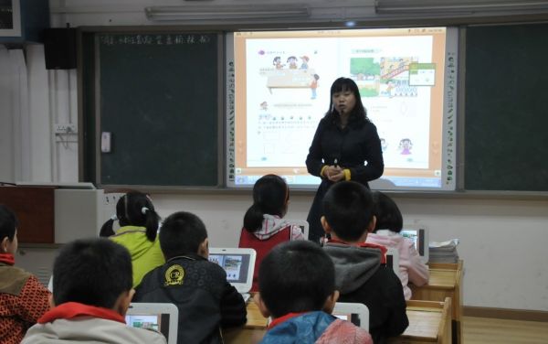 活动中,大家在崇仁路小学“一对一”实验教室、全自动高清录播教室分别观摩了数字化环境下的数学学科整合课《四边形的认识》和《圆的认识》。课后,由授课的三年级数学代婕老师介绍基于“一对一”数字化环境下的课堂教学设计思路以及教学心得。崇仁路小学教师代表还介绍了武汉教育云空间在教学中的应用情况。