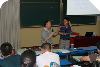 在这里我们不得不提到一位学员陈新阶老师——江岸区石桥小学58岁的科学教师。作为这次培训班的最年长者,陈老师用他求学的精神,丰富的教学经验,谈谐幽雅的“咨询”一次又一次将自己的“发难”抛给了四位主讲教师。彼此的交流与互补让我们的课堂一次又一次地推向高潮,主讲的老师高兴了,参培的学员们兴奋了,就连班主任甘老师也自行地投入这场趣味横生的大探讨之中。