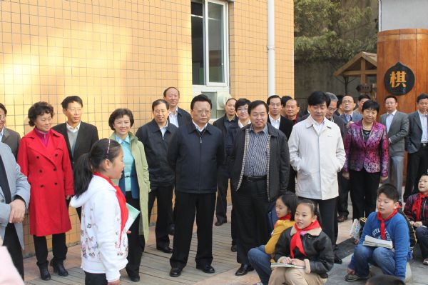 11月6日,省政协涂勇副主席率部分委员视察武汉市武昌区实验小学,调研武汉市健康学校的创建工作。武昌区区长、副区长、教育局局长王兴文以及市区相关部门负责人一起迎接检查。在实验小学张基广校长的带领下,涂主席一行视察了实验小学的棋艺、运动健康长廊、书画展厅、学校艺术时空、健康生活馆等学生修身养性、陶冶健康素养等活动空间,并给予充分肯定。在展厅,涂主席看到十一二岁的孩子书法与绘画这样的隽秀,深有感触,动情地说:“真了不起,生活在实验小学的孩子真是幸福!相关媒体要好好报道。”