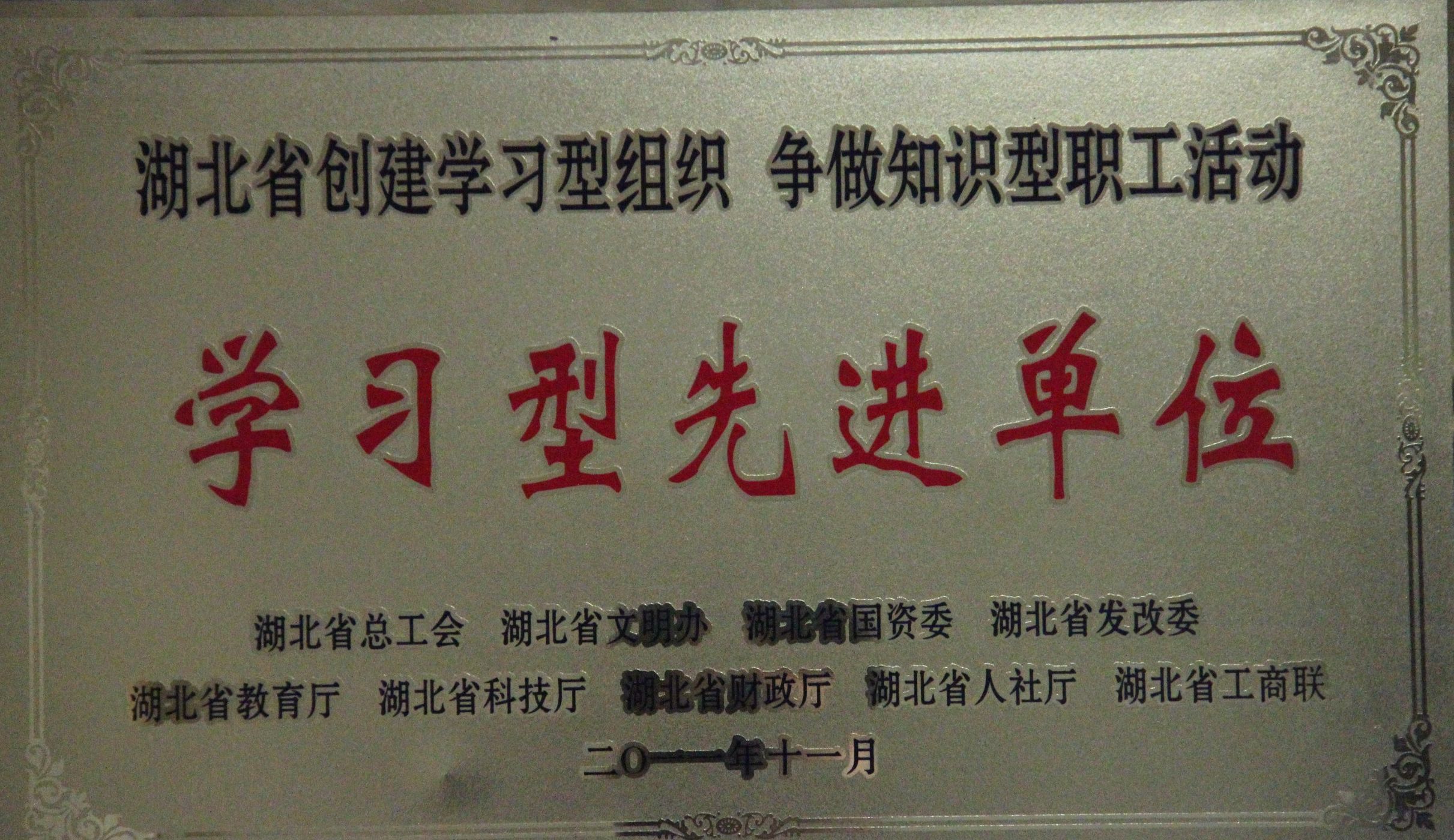 热烈祝贺我院被湖北省总工会、湖北省文明办、湖北省国资委、湖北省发改委、湖北省教育厅、湖北省科技厅、湖北省财政厅、湖北省人社厅和湖北省工商联9部门联合表彰为“湖北省创建学习型组织 争做知识型职工活动 学习型先进单位”!
