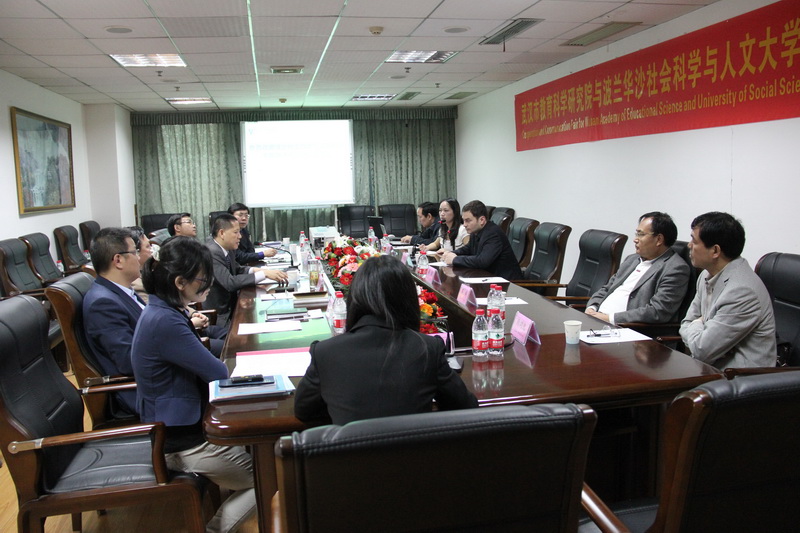 院长王池富向来宾介绍了我院的基本情况,马勒勤先生代表波方介绍了SWPS办学和国际交流与合作的基本情况,基础教育研究所所长张汉强介绍了武汉市心理健康教育现状,并与马勒勤先生就心理健康教育与师资培训事项进行了有效的互动与交流。