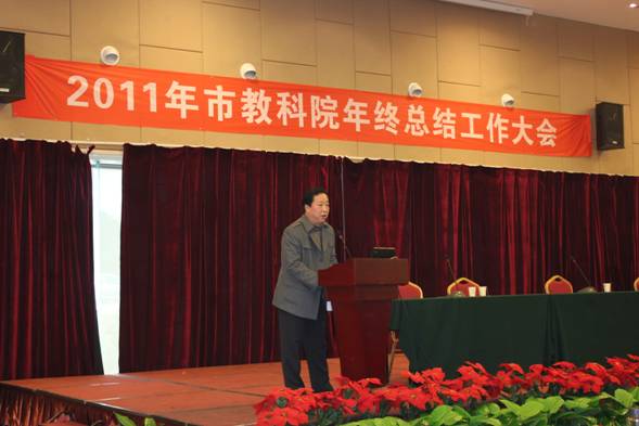 市教育局徐定斌副局长专程赶来参加了我院的总结大会,并发表了重要讲话。徐局长对我院2011年的工作、成绩和影响给予了高度肯定,对我院党委、行政、教职工在工作中体现出的敬业精神、创新精神和奋进精神表达了高度敬意。对下一步工作,徐局长通过“落实、深化、精细、实效、引领”五个关键词提出了建议和要求。希望全体教职工抢抓机遇,携手共进,为全面开创教育改革新局面作出更大的贡献。
