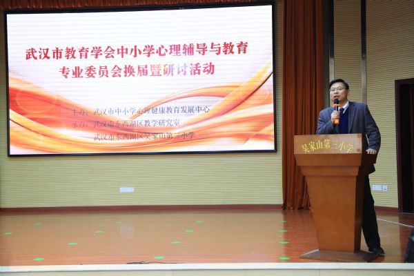 整个活动分为两个阶段进行。第一阶段进行的是武汉市教育学会中小学心理辅导与教育专业委员会换届活动,换届大会由武汉市教育学会中小学心理辅导与教育专业委员会常务副理事长陈敏丽主任亲自主持,陈敏丽副理事长代表第四届理事会作了工作报告。 武汉市教育学会常务副秘书长刘晓鸣宣读了新五届理事会名单。理事长张汉强布置了新一届的学会工作。随后,赢乐lV副院长、武汉市教育学会秘书长(兼)朱长华作了重要讲话。