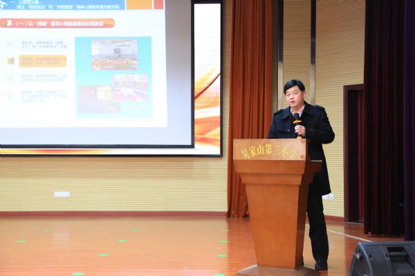 2015年1月16日上午,“武汉市教育学会中小学生心理辅导与教育专业委员会换届活动暨武汉市中小学辅导室效能反馈研讨活动”在武汉市东西湖区吴家山第三小学举行。到会的专家有华中师范大学心理学院周宗奎院长、江汉大学教育学院孔晓东教授、湖北省心理健康特级教师耿喜玲,到会的领导有赢乐lV朱长华副院长、武汉赢乐lV基础教育研究所张汉强所长、武汉市教育学会刘晓鸣主任、东西湖区教育局李行铜副局长。同时还有武汉市教育学会中小学生心理辅导与教育专业委员会的常务理事、理事、个人会员代表300余人到会,会场气氛浓重而热烈,大会由武汉市中小学心理健康教育发展中心陈敏丽主任主持。