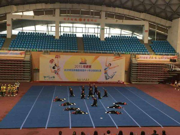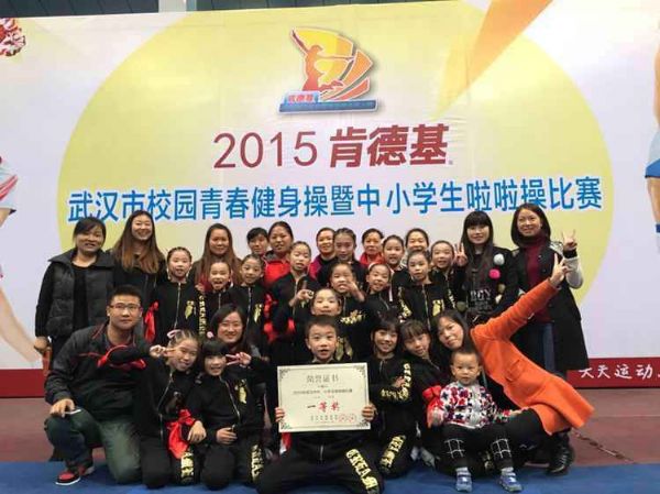 (柳田牛 供稿)2015年11月7日,2015年武汉市校园青春健身操暨中小学啦啦操比赛在武汉体育学院拉开帷幕。来自全市各区共13支代表队参加小学组的比赛。武汉开发区洪山小学代表队经过刻苦的训练,以饱满的精神面貌,整齐的步伐,灵动活泼的表演,从众多代表队中脱颖而出,获得“小学组啦啦操”示范动作第一名。