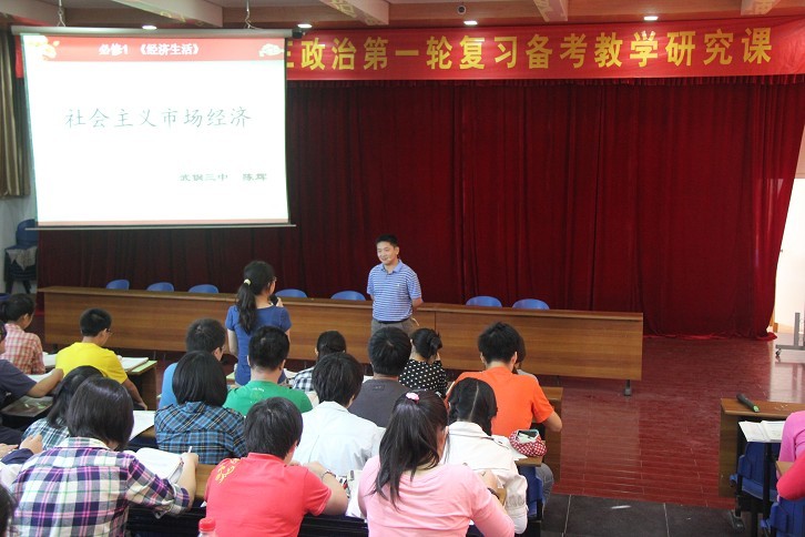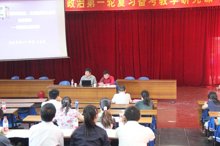 2012年9月28日上午,武汉市高三政治第一轮复习备考教学研讨课(经济生活)活动在青山区武钢三中隆重举行。会议由武汉赢乐lV政治教研室主任张祖涛主持,全市各区政治教研员、高三政治教师共100余人参会。本次教研活动由复习研讨课、集中评议、专题报告等环节组成,旨在探索高三复习备考的方法,切实提高高三复习备考的有效性。