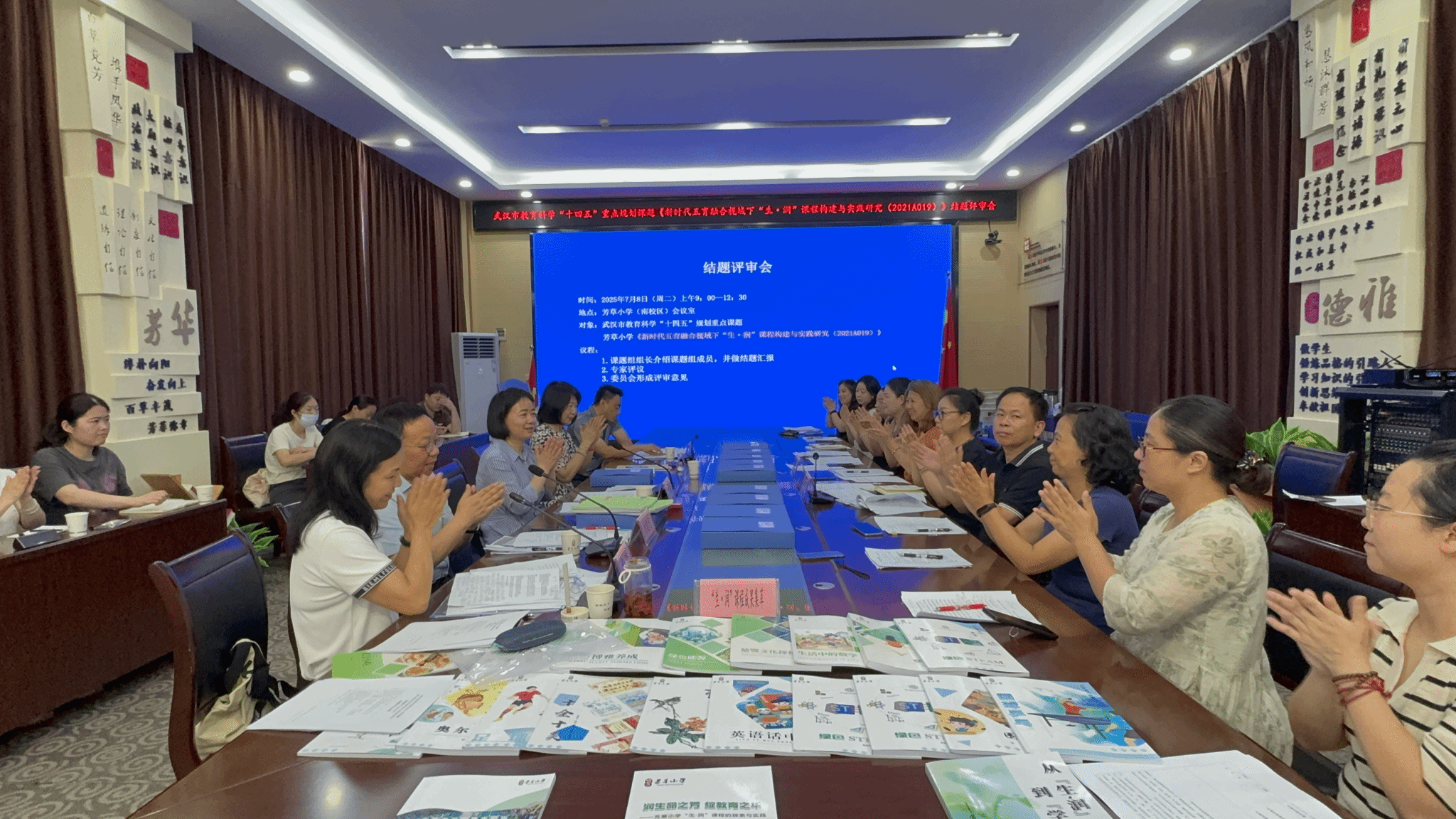 7 月 8 日上午,武汉市教育科学规划2021年度重点课题《新时代五育融合视域下“生・润”课程构建与实践研究》结题评审会在武汉市汉阳区芳草小学举行。本次评审会由省、市、区多位专家领导全程参加,市、区教科研部门代表及兄弟学校教科研骨干参与观摩。