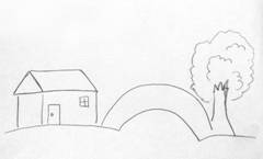 提问:“江南水乡”画面所含造型元素?——房、桥、水、树