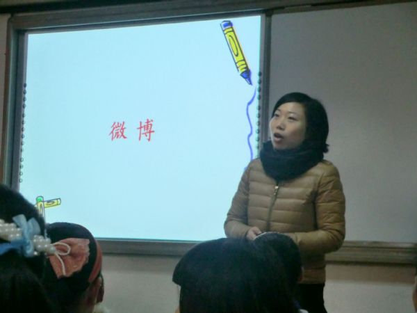 接着,廖颖慧主任执教了一节令人耳目一新的课——《微博里的文化现象》。课上,她带领学生了解微博,感受微博的魅力,并培养了学生独立思考的文化精神。这种极具现代感和时代精神的课给入会的老师们带来了赏心悦目的感受,也受到了武昌区教研培训张纯主任和武汉市青山区教研员肖钰明老师的高度赞赏。