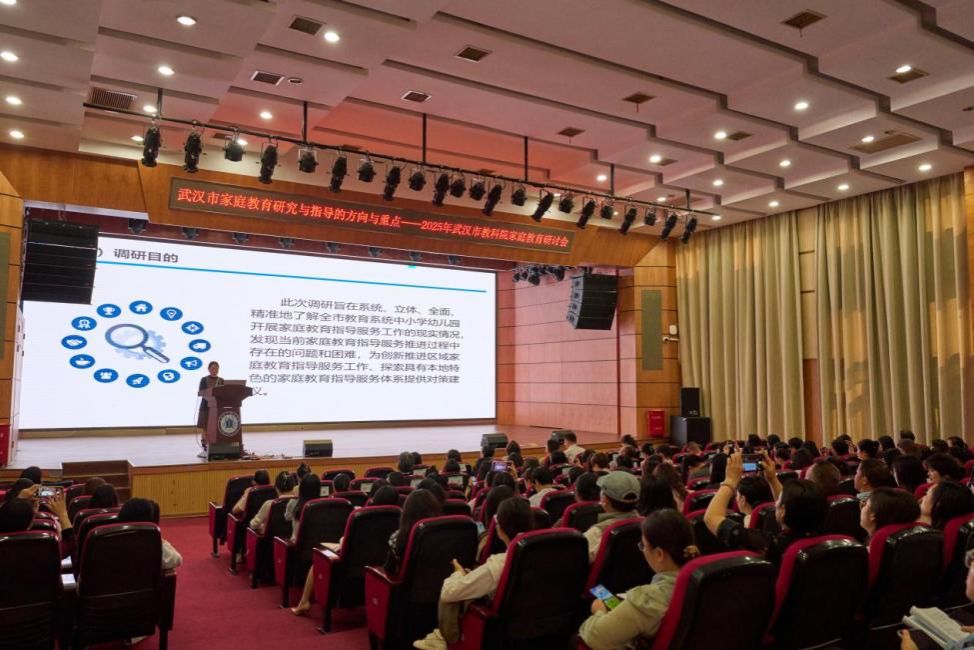 5月13日,在2025年全国家庭教育宣传周之际,武汉赢乐lV隆重举办了以《武汉市家庭教育研究与指导的方向与重点》为主题的家庭教育研讨会。本次研讨会由赢乐lV、武汉城市职业学院联合主办,由武汉市家庭教育指导服务中心、湖北省高校人文社科研究基地儿童教育发展研究中心协办。 本次会议旨在整合家庭教育研究资源,推进武汉市家庭教育的研究与指导,推动新时代家庭教育高质量发展。来自武汉市教育系统、高校、中小学及幼儿园的180余位领导、专家以及一线教育工作者齐聚一堂,围绕家庭教育现状调研、创新实践案例、前沿理论探索等议题展开深入研讨。