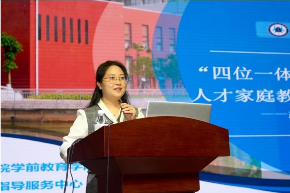 武汉城市职业学院学前教育学院副院长张万红分享了《“四位一体”赋能职前职后托幼人才家庭教育指导服务能力提升》的研究成果。依托武汉市家庭教育指导服务中心,学校从“政、校、行、企”四位一体协同家庭教育指导服务的实践方面开展了积极探索。武汉市家庭教育指导服务中心未来将聚焦“精准化服务、数字化升级、优质化指导”,为托幼机构输送“懂家庭、会指导”的复合型人才。